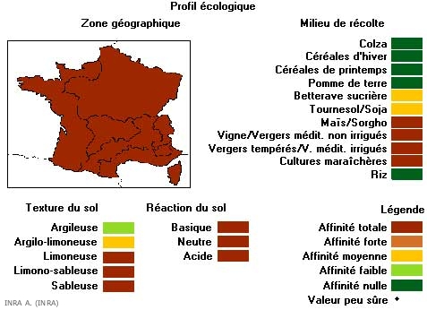 Commensales des cultures acidophiles, cette adventice est présente dans de nombreux pays d'Europe. En France, on la trouve sur tout le territoire, sur sols sableux à limoneux en vignoble et vergers et dans les cultures maraîchères, betterave et maïs.