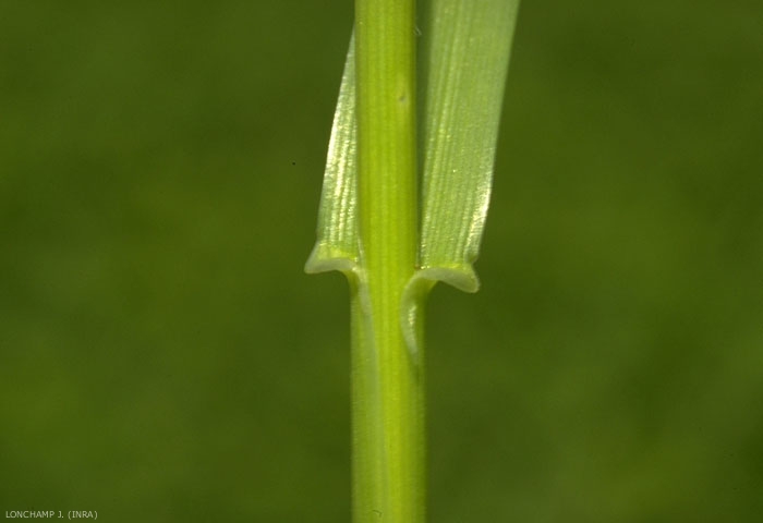 Ligule membraneuse tronquée, oreillettes allongées entrecroisées.