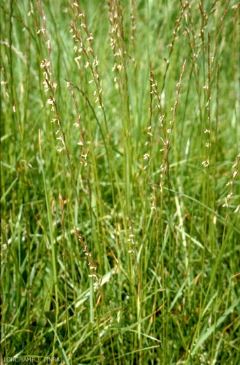 Lemme > 4 mm, enroulée à sa base et atténuée au sommet, glabre avec 5 nervures visibles. Marges de la lemme étalées et largement membraneuses dans la partie supérieure