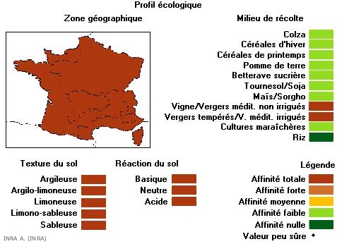 Comme adventice, on la trouve dans tous les pays d'Europe, en France sur tout le territoire, sur tout type de sols. Elle est plus fréquente en vergers et vignoble.