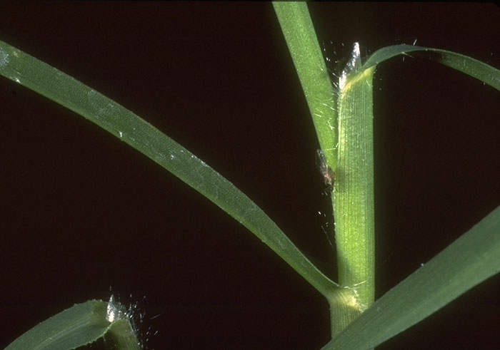 Ligule membraneuse dentée, limbe non auriculé à la base, touffes de poils de part et d'autre de la base du limbe.