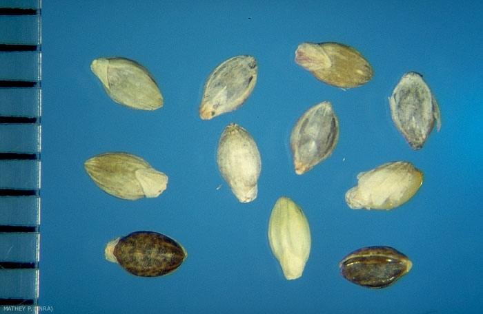 Semence généralement constituée d'un épillet contenant une fleur fertile et une fleur stérile ;