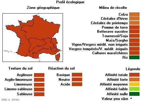 Plante très commune, cette adventice est présente dans les cultures dans de nombreux pays d'Europe au Nord comme au Sud. En France, on la trouve sur tous types de sols et dans toutes les cultures sauf en rizières bien sûr.