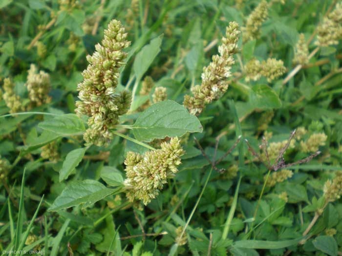 Fleurs à périanthe constitué de 2 ou 3 pièces, disposées en glomérules axillaires le long d'une panicule spiciforme