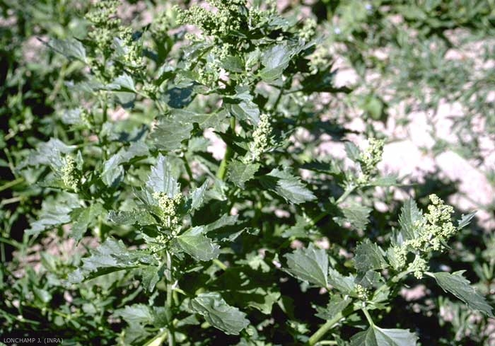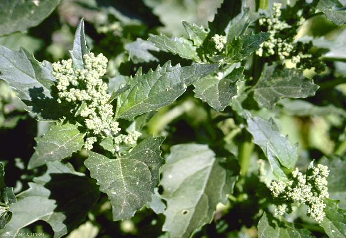 Fleurs verdâtres petites disposées en grappes lâches. Inflorescence entièrement feuillée, au moins dans sa partie supérieure ; sépales un peu carénés sur le dos cachant le fruit