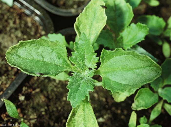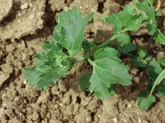 Feuilles simples, ovales à triangulaires, irrégulièrement dentées.