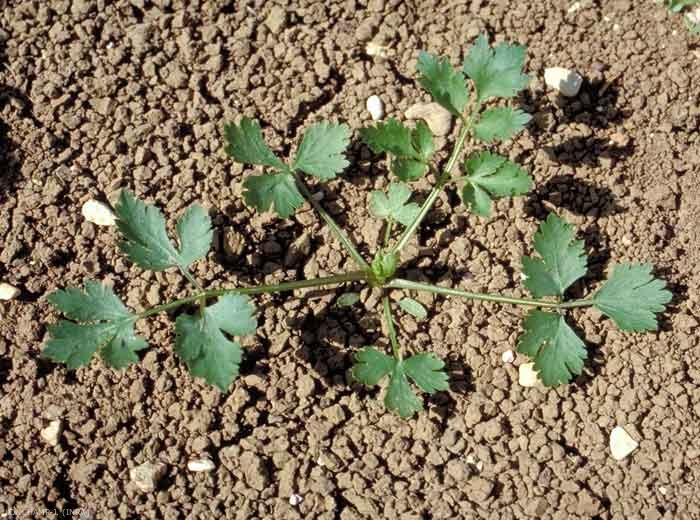Les cotylédons sont elliptiques, à sommet arrondi en massue, plus ou moins pétiolés et les feuilles divisées, palmées (figure 1).