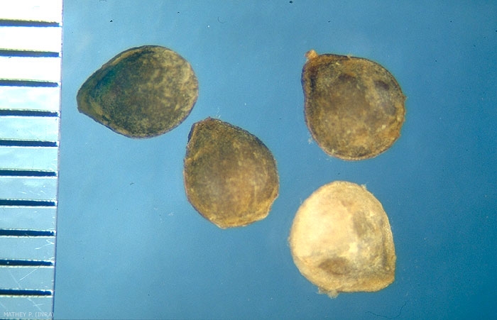 Dimensions :graine 3,0-3,5 x 3,5-4,5 mm ; fruit 7-8 mm de diamètre