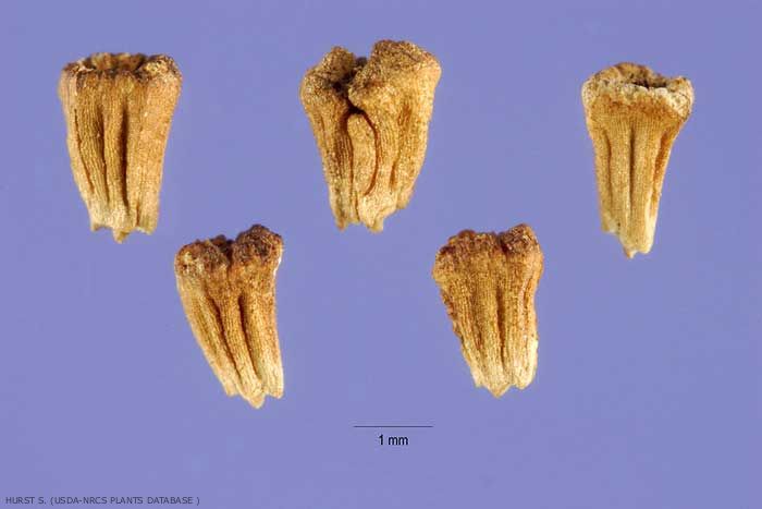 Fruits : akènes à rainures longitudinales et non aplatis.