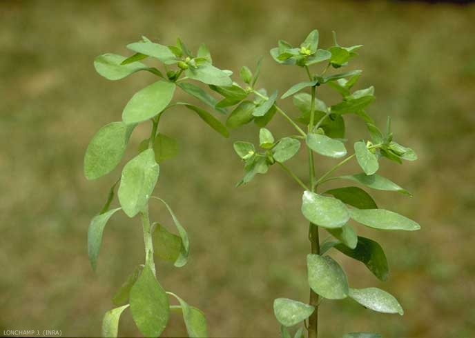 Tige dressée, ramifiée dès la base, vert clair, teintée de rouge. Présence de latex blanchâtre