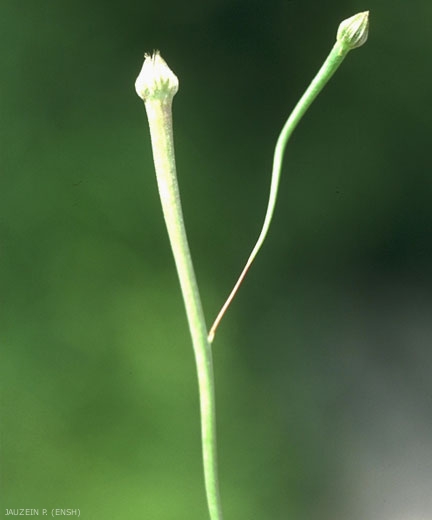 Tige : sans feuilles, légèrement ramifiée, creuse, s'élargissant en dessous des capitules floraux. Il y a généralement plusieurs tiges qui partent de la même rosette