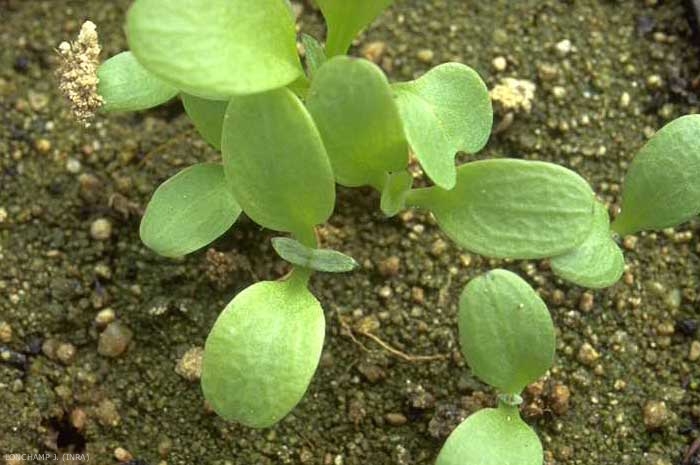 Cotylédons elliptiques à ovales, à sommet arrondi, plus ou moins pétiolés
