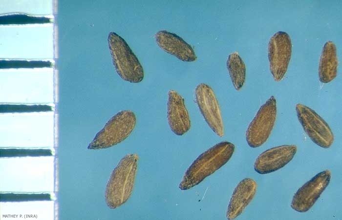 Forme : éllipsoïde à ovoïde, aplani, non marginé, souvent enveloppé dans une bractée persistante