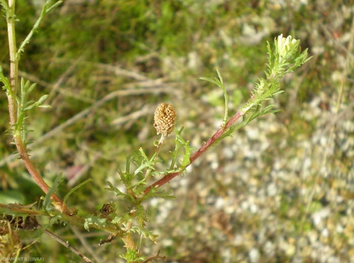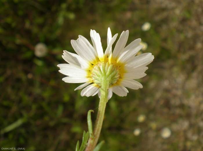 Fleurs tubuleuses jaunes, et celles à ligule blanches et jaunes à leur partie inférieure. Fleurs munies à la base d'une paillette poilue, aiguë, pliée. Involucre à bractées appliquées scarieuses