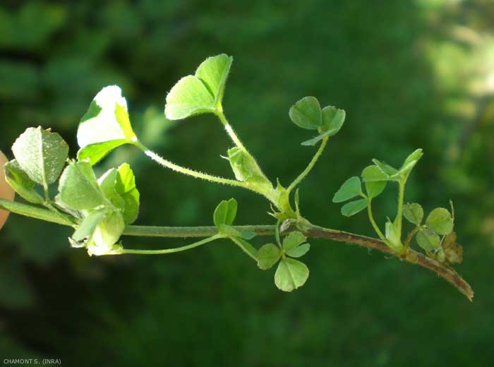 Feuille à folioles denticulées dans leur partie supérieure. Limbes des folioles velus. Stipules aiguës, à peine dentées à la base ;