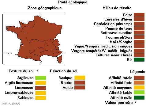 Cette adventice est présente dans les cultures dans tous les pays d'Europe au nord comme au sud. En France on la rencontre sur tout le territoire et dans les différents types de culture.