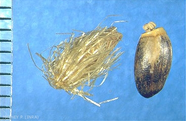 Forme : conoïde, ovoïde à ellipsoïde, aplanie, +/- arquée. Base arrondie et sommet tronqué. Aigrette blanche caduque à soies non plumeuses ;