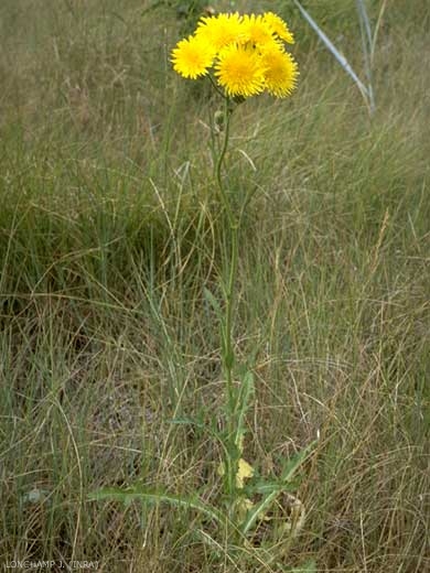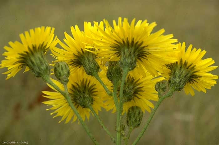 Fleurs jaunes, capitules peu nombreux, longuement pédonculés en corymbe, à pédoncules hispides-glanduleux ainsi que l'involucre. Plante dioïque ;