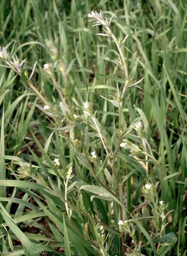 Feuilles vert pâle, revêtues de petits poils appliqués, atténuées à la base et vers le sommet. Feuilles oblongues, lancéolées, rudes, à une nervure. Feuilles caulinaires, sessiles