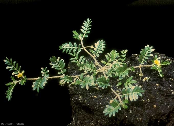 Feuilles opposées composées de 5 à 8 paires de folioles ovales, disposées sur 2 rangées ; pas de foliole terminale ; stipules très petites