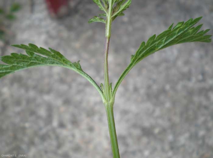 Feuilles opposées, les inférieures pétiolées elliptiques, allongées, nettement dentées. Feuilles suivantes ovales ou oblongues, incisées dentées ou pennatifides ;