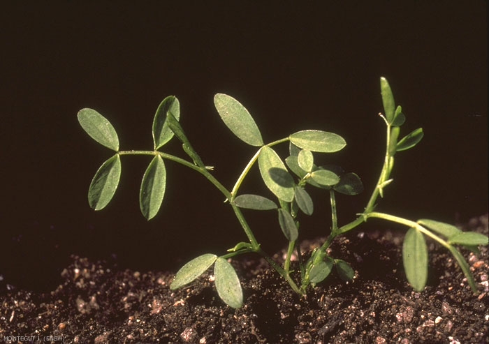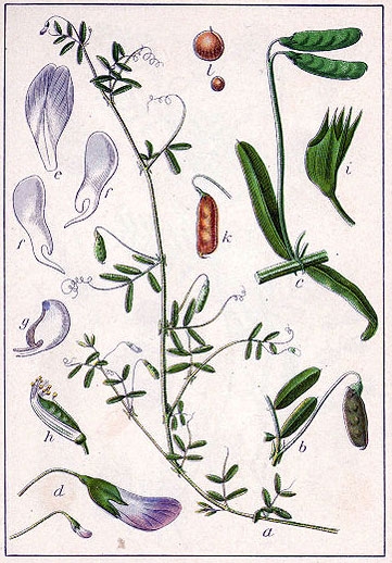Feuilles à 2 à 5 paires de folioles à sommet aigu, terminées par une vrille simple ou ramifiée (les premières feuilles vraies n'ont qu'une paire de folioles ovales, allongées au sommet arrondi) ;