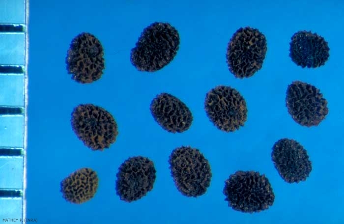 Ornementation : graine alvéolée à paroi à mailles fines, sinueuses, lamelleuses