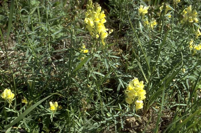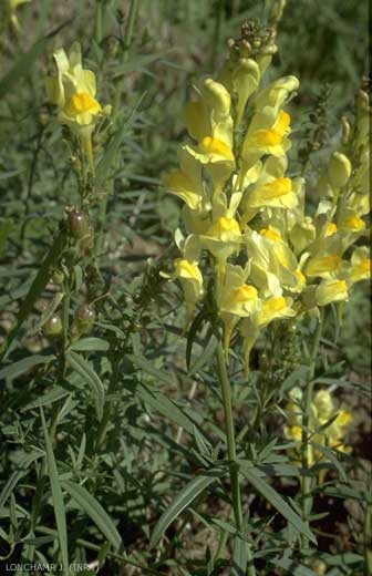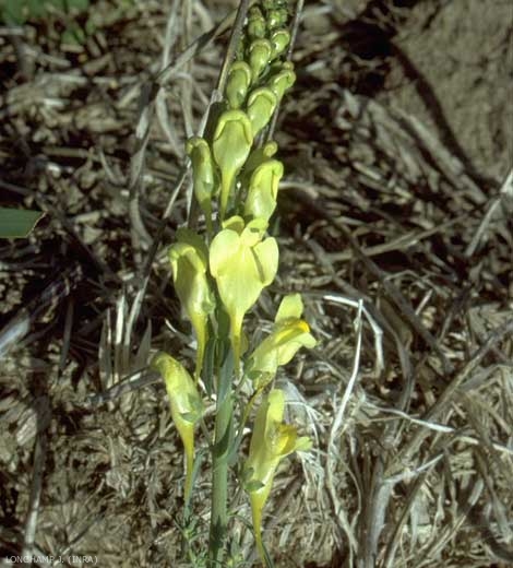 Inflorescence : grappe terminale dense de fleurs d'un jaune lumineux, à gorge orangée et avec un éperon de 10 mm de long ;