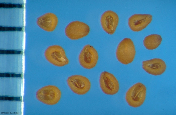 Dimensions : 0,7-0,8 x 1,0-1,1 mm ;
