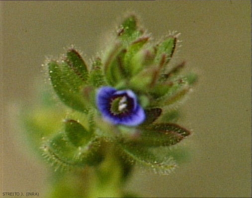 Fleurs bleu vif, de 3 mm de diamètre environ dépassant à peine le calice, en grappes terminales lâches. Pédoncules à peine plus long que les bractées ;