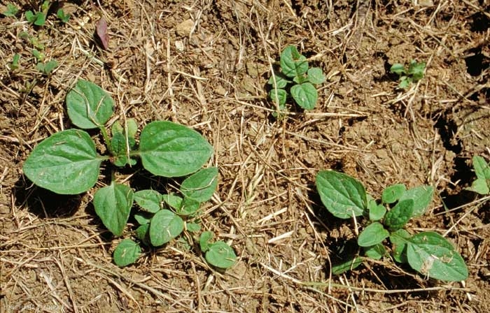 Feuilles opposées de 2 cm de large, pétiolées, ovales ou oblongues, en coin ou arrondies à la base, entières ou dentelées, faiblement nervées, la paire supérieure entourant l'épi ;
