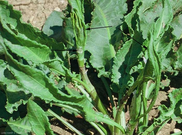 Feuilles inférieures disposées en rosette, de teinte vert-foncé. Feuilles à limbe ondulé, plus ou moins crispées sur les bords ; les inférieures à limbe ovale-allongé, aigu, atténué ou tronqué à la base. Feuilles à long pétiole canaliculé, souvent doublement enroulées en cigare sur leur face inférieure, à l'intérieur d'une gaine membraneuse et blanchâtre (ochréa) ;