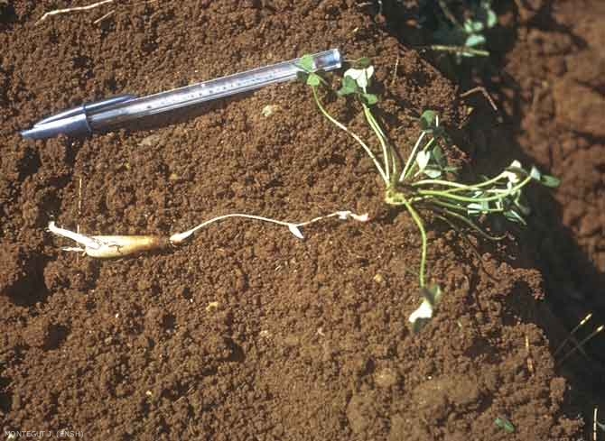 Tige souterraine naissant d'un bulbe profond, portant des bulbilles isolées de la grosseur d'un pois ;