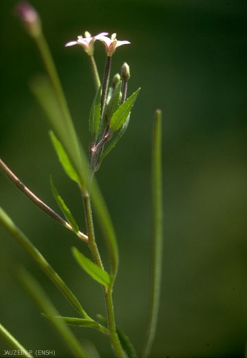 Fleurs roses à 4 pétales bifides, en grappe lâche ; stigmate en massue