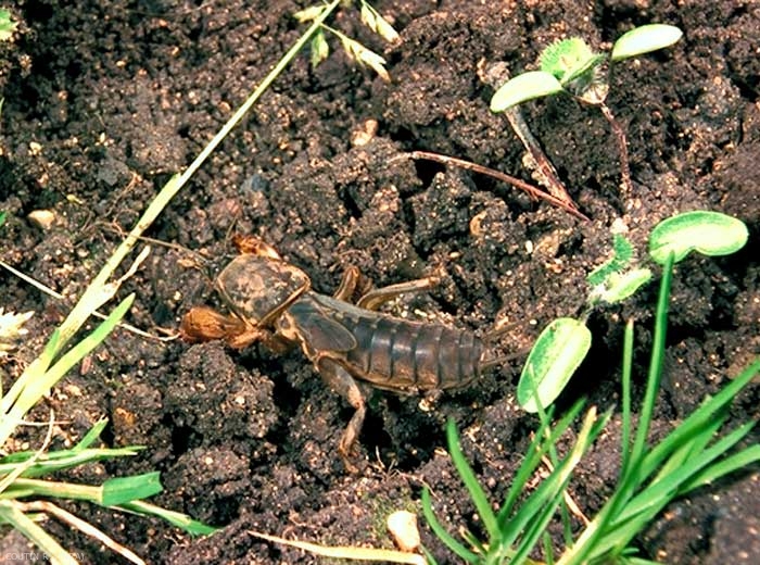 La courtilière hiverne à l'état d'adulte ou de larves de 3ème stade, enfouie dans le sol à une profondeur variant de quelques cm à 1 m. Elle reprend son activité au printemps et creuse alors ses tunnels, les uns juste sous la surface du sol, les autres très profondément.