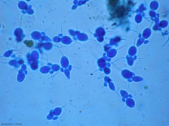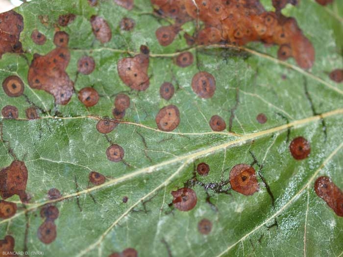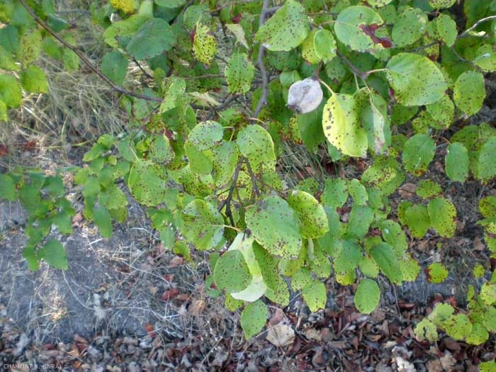 L'entomosporiose est provoquée par le champignon Diplocarpon mespili (anc. Entomosporium maculatum cv. cydoniae, Ascomycota Leotiomycetes). Ce champignon provoque des petites taches (macules) sur les feuilles et les fruits (figures 1 à 3).