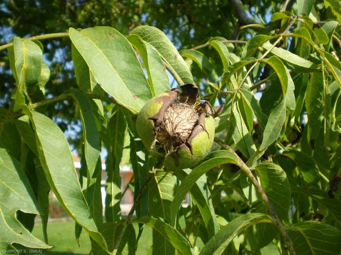 Le noyer est un arbre de grande taille pouvant atteindre 20 à 25 m, originaire d'Asie Centrale et largement cultivé en Europe. Les feuilles sont composées de 7 à 9 folioles peu ou pas dentées et glabres (figure 1). Les variétés se distinguent par le mode de fructification terminal ou bien sur brindilles latérales où la mise à fruit est plus rapide, la production plus importante mais qui nécessite une bonne maitrise des conditions de culture.