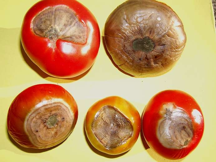L’anthracnose (Colletotrichum coccodes), comme l'alternariose, provoque également des taches sur les fruits (figure 1), mais elles ne sont pas situées dans la zone zone pédonculaire, et elles ont un développement lent et sont déprimées avec un halo jaunâtre et une zone sombre au centre.