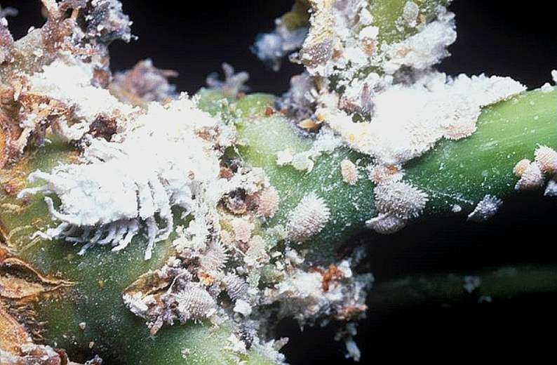 Observez la face inférieure des feuilles, l’aisselle des feuilles et les tiges pour détecter les insectes adultes et les larves ou le miellat. Vous pourrez reconnaitre les cochenilles entre elles grâce à l’amas les entourant. Pour la cochenille Planococcus, il est blanc et cotonneux alors que pour la cochenille à bouclier il est brun et lisse.