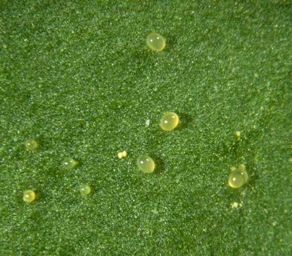 Les larves, les nymphes et les adultes, souvent présents à la face inférieure du limbe, se nourrissent en piquant puis en suçant le contenu des cellules végétales. Ces piqûres, qui sont parfois très nombreuses, sont à l'origine des symptômes observés.
