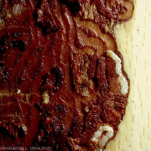 - Chute prématurée du feuillage (localement, ou, en cas de forte attaque, généralisée)