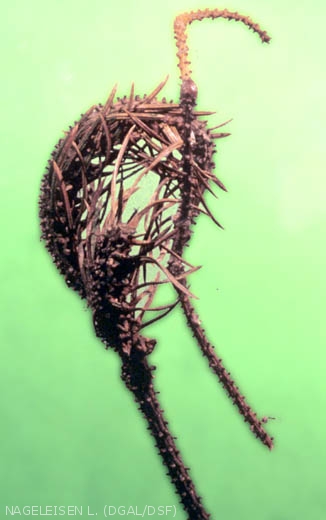 - Sur épicéa de Sitka : formation de galles sur les pousses, entraînant des déformations.