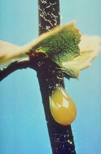 Taches sur les feuilles, coloration anormale du bois et écoulement d’exsudat.