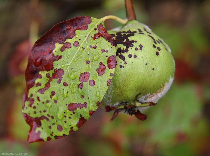 Les fruits sont également affectés, des petites taches crouteuses noires les parsèment (figures 1 et 4)