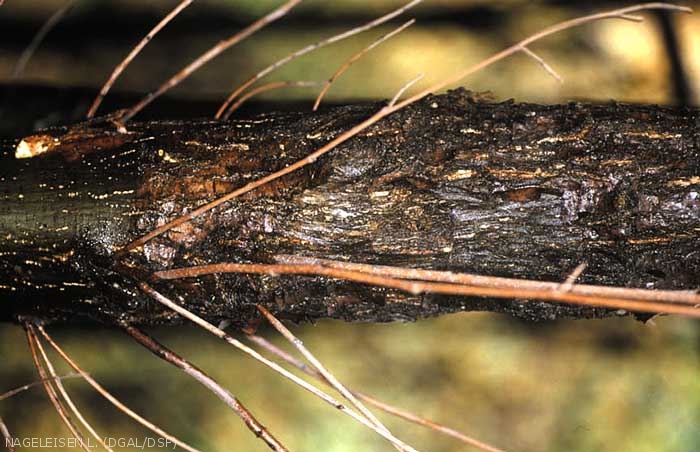 - Fréquemment, de vigoureux rejets se forment en dessous des chancres du tronc.