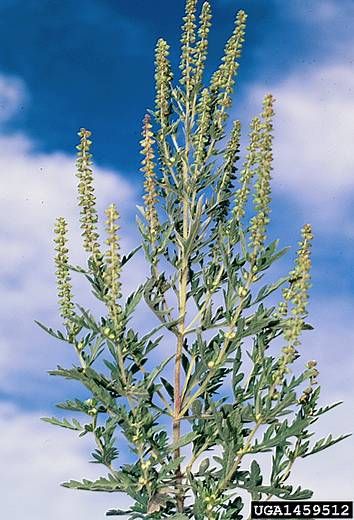 Les fleurs sont petites et verdâtres, disposées à l’extrémité des tiges. Les fleurs mâles et femelles sont différentes. Les fleurs mâles, qui produisent le pollen, sont groupées en épis bien visibles, en petits capitules qui libèrent le pollen à maturité.