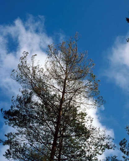 - Défoliation au printemps avec présence d'un fouet d'aiguilles de l'année à l'extrémité des rameaux (consommation uniquement de la pousse n - 1). En été, toutes les aiguilles sont consommées.
