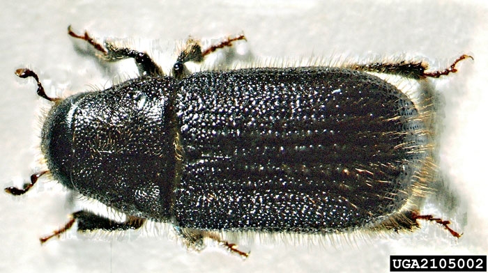 L’adulte mesure de 7 à 9 mm de long, il est de fait le plus grand insecte scolytidé. Son corps est noirâtre, recouvert de poils orangés. Les femelles fécondées creusent des galeries dans la zone sous-corticale (sous l’écorce) de sujets vivants, âgés de plus de 15 ans. Elles pondent ensuite leurs oeufs par paquets dans les recoins de ces galeries de mai à octobre.
