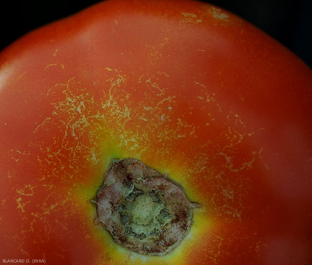 - Destruction ou disparition de la chlorophylle : engendre la réduction de la photosynthèse et de la croissance des plantes. En cultures de tomates et de concombres, les pertes de rendement sont considérables lorsque 30 % de la surface foliaire sont endommagés.