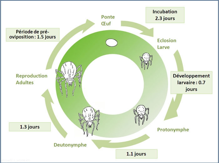 Ci-dessus le cycle de développement de Phytoseiulus persimilis à 25°C.